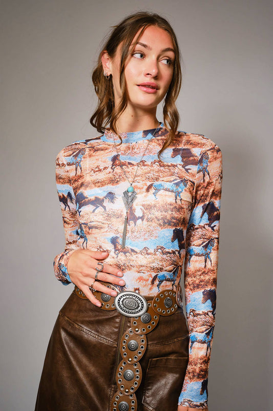 10668-COW PRINT HALTER BUST BELT DETAIL TOP
