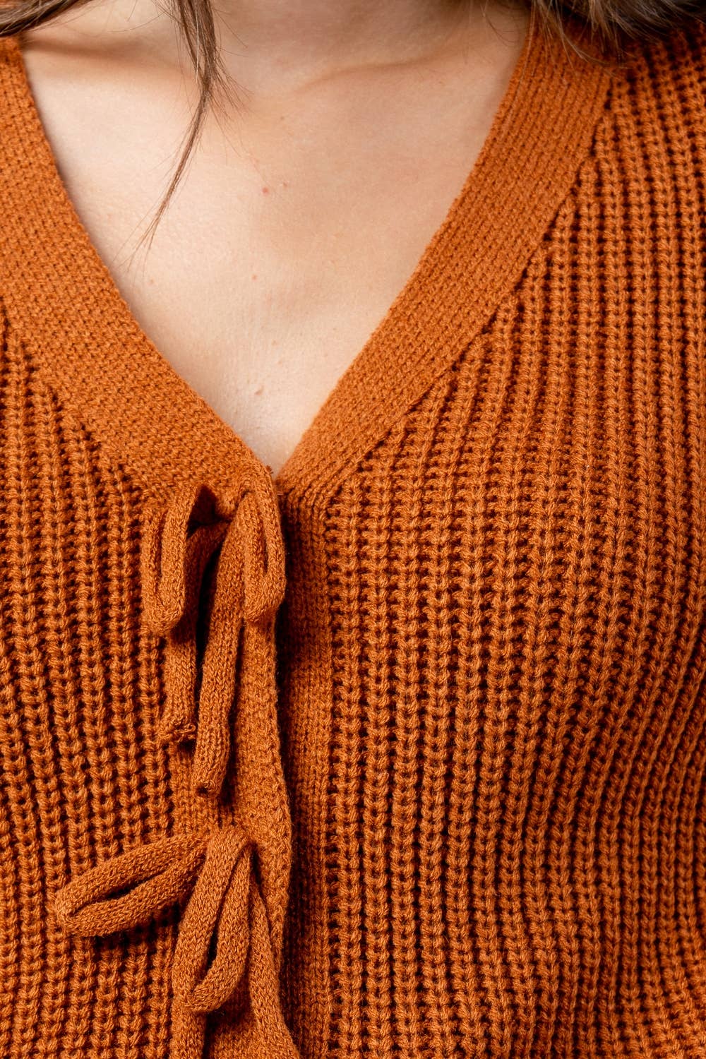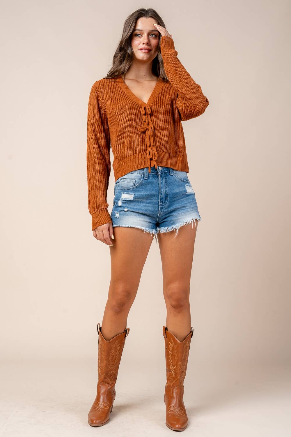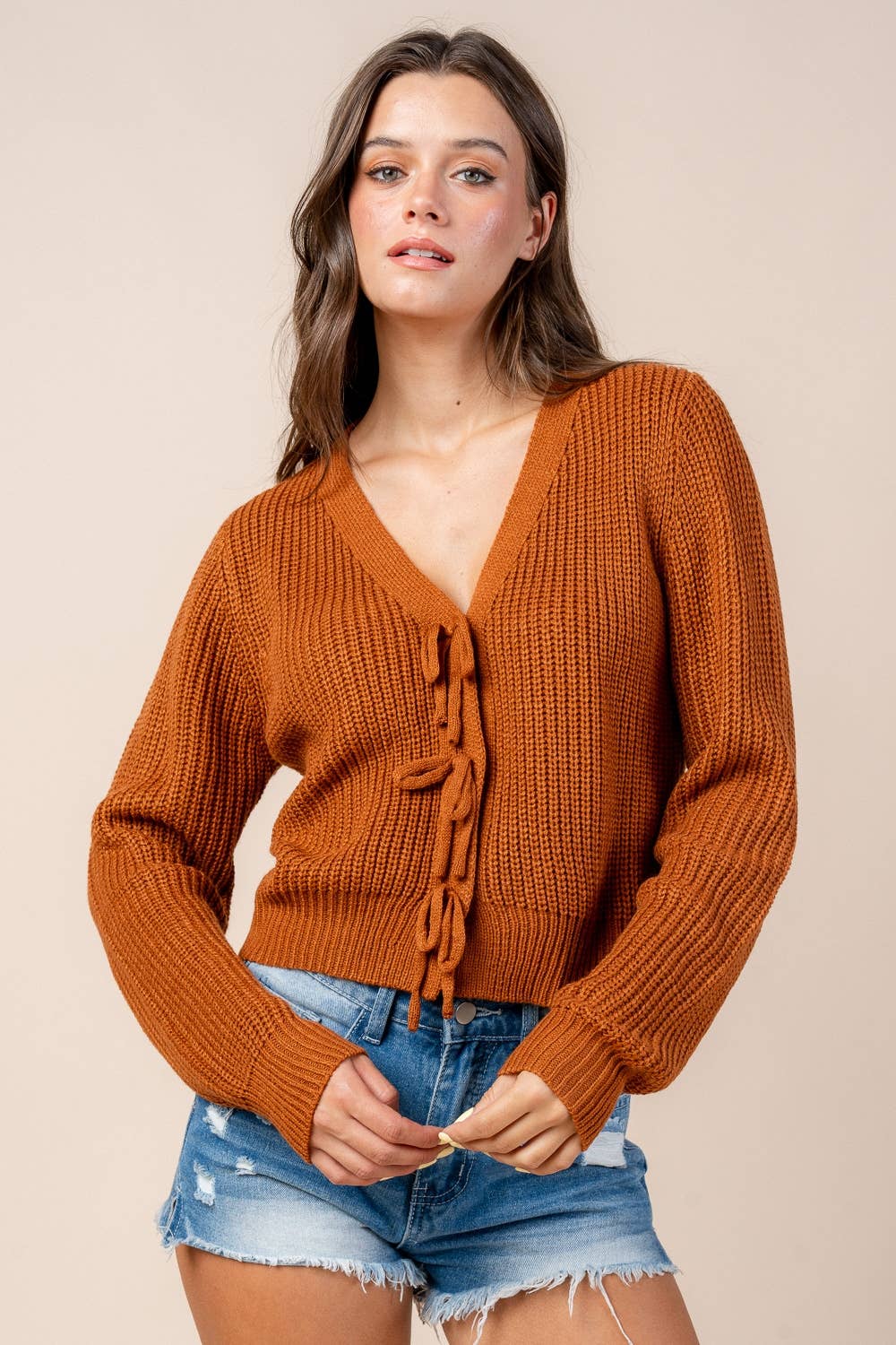 SWEATER CARDIGAN WITH FRONT BOW DETAILS