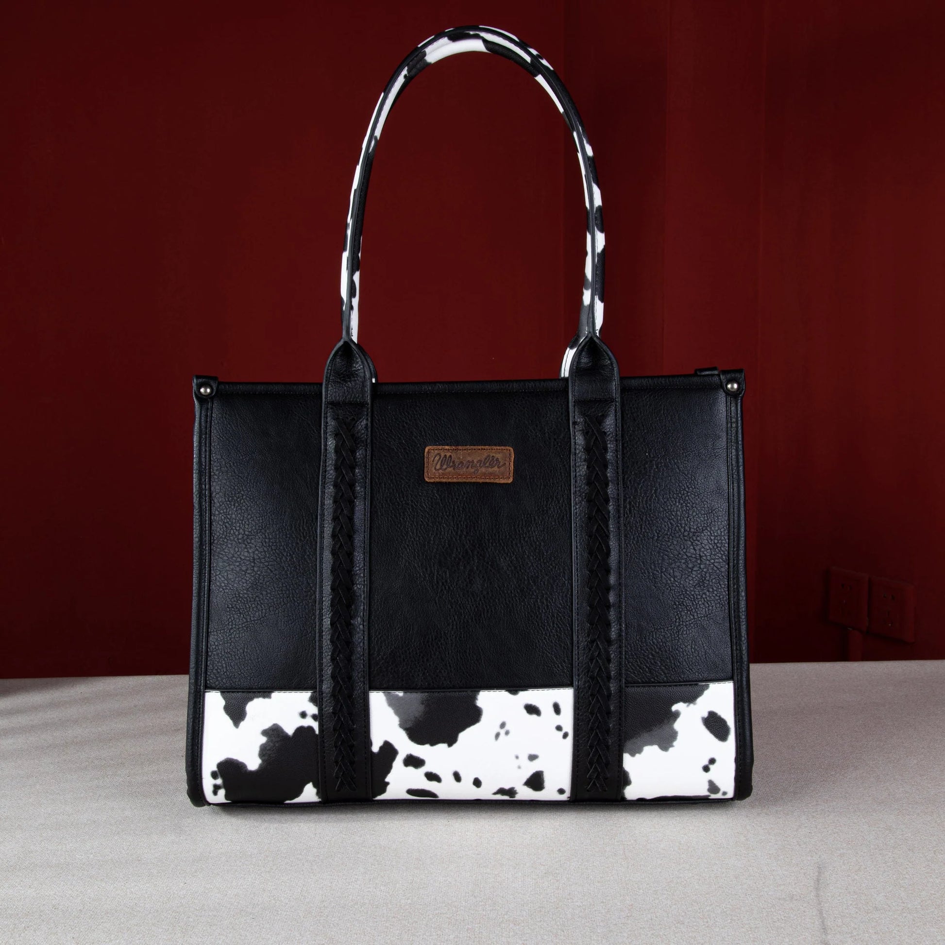 Wrangler Cow Print Concealed Carry Wide Tote -Black